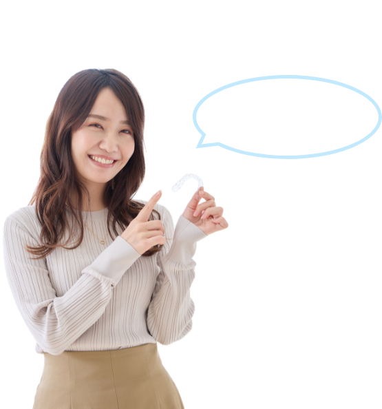 ワイヤー矯正のように金属や金具を使用していないので、唇や頬粘膜に引っかかる心配がなく口内炎などのトラブルも少ないです。プラスチック素材のみで作られるので金属アレルギーで矯正を諦めていた方でも治療を行うことができます。